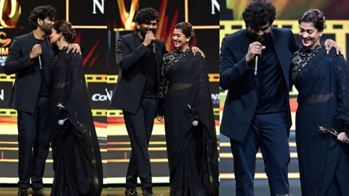 சந்தோஷத்தில் கணவர் முத்த மழை: அன்னபூரணி படத்துக்காக நடிகை நயன்தாரா ஜெய் ஸ்ரீராம் என்று போட்டு மன்னிப்பு கடிதம் எல்லாம் வெளியிட்டு இருந்தார். ஏகப்பட்ட பிரச்சனைகளை சந்தித்து வந்த அவருக்கு இந்த விருது மிகப்பெரிய அங்கீகாரமாக உள்ளதாக நினைத்த விக்னேஷ் சிவன் மேடையிலேயே தனது மனைவி நயன்தாராவுக்கு முத்த மழை பொழிந்த காட்சிகள் வெளியாகி உள்ளன.