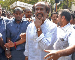 முதலில், வெளிநாட்டில் எந்திரன் படப்பிடிப்பு முடிந்து திரும்பியதும் ரசிகர்களை அவர் அழைத்து பேசுவார் என்று எதிர்பார்க்கப்பட்டது.