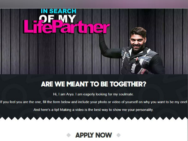 இந்த இணையப் பக்கத்தில், ஆர்யாவை திருமணம் செய்து கொள்ள விரும்பும் பெண்கள் அவர்களைப் பற்றிய பயோடேட்டா முதல் பாஸ்போர்ட் விபரங்கள் வரை, ஆர்யாவை திருமணம் செய்ய விரும்புவதற்கான காரணம், மற்றும் திருமணம் செய்ய விரும்புபவர்கள் பேசிய ஒரு நிமிட வீடியோ க்ளிப் ஆகியவற்றைப் பதிவு செய்யவும் அறிவுறுத்தப்பட்டுள்ளது.