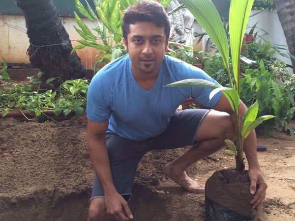 அடுத்து இப்போது சூர்யா களமிறங்கியுள்ளார். காடுகள், மரங்கள்தான் இப்போது பூமியின் மாசுபாட்டை நீக்க ஒரே வழி என்று கூறியுள்ள சூர்யா, தன் வீட்டில் மரம் நட்டு, தண்ணீர் ஊற்றினார். அந்தப் படங்களையும் வெளியிட்டுள்ளார்.