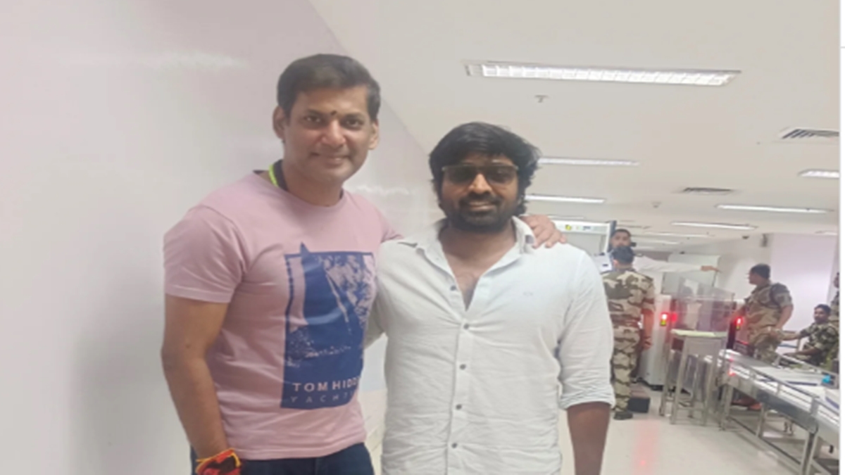 விஷால் சந்திப்பு: இந்நிலையில் தனது ரசிகர் மன்ற தலைவரின் திருமணத்துக்காக மதுரைக்கு சென்றார் விஷால். இதனையொட்டி சென்னை விமான நிலையத்துக்கு வந்த அவர்; அங்கு வைத்து விஜய் சேதுபதியை சந்தித்தார். அப்போது புகைப்படம் எடுத்துக்கொண்ட விஷால் தன்னுடைய இன்ஸ்டாகிராம் பக்கத்தில் அதனை பகிர்ந்து, "என் டார்லிங் விஜய் சேதுபதியை விமான நிலையத்தில் சந்தித்தேன். அவரை எப்போது பார்த்தாலும் மகிழ்ச்சிதான். பயங்கர எனர்ஜியோடு இருப்பார். நான் அவரை சந்தித்து நீண்ட நாட்களாகிவிட்டன. இந்த சந்திப்பு சில நிமிடங்கள் மட்டுமே நடந்தது. ஆனால் அவருடன் உரையாடியது மகிழ்ச்சி. உங்கள் (விஜய் சேதுபதி) எதிர்கால முயற்சிகளுக்கு வாழ்த்துகள். கடவுள் உங்களை ஆசீர்வதிப்பார். மீண்டும் விரைவில் சந்திப்போம் என நம்புகிறேன்" என்று குறிப்பிட்டிருக்கிறார்.