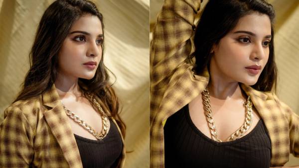தாதா செயின்.. வில்லன் டைப் லாங் கோட்.. தங்க நிறத்தில் ஜொலிக்கும் ஆத்மிகா!
