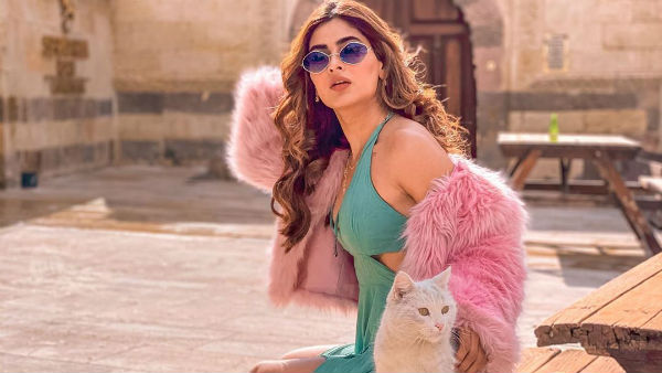 அந்த மாளிகையின் உள்ளிருந்து அவர் எடுத்த மற்றொரு போட்டோவை இன்று காலை பதிந்துள்ளார். பச்சை உடையில் கூலிங் கிளாஸ் அணிந்து கிளாமராக இருக்கும் அந்தப் புகைப்படத்தில் அவர் அருகில் பூனை ஒன்றும் இருக்கிறது. அடிபட்ட பூனை நான் என்று கேப்ஷன் கொடுத்துள்ளார். இந்தப் புகைப்படம் வைரலாகி வருகிறது.