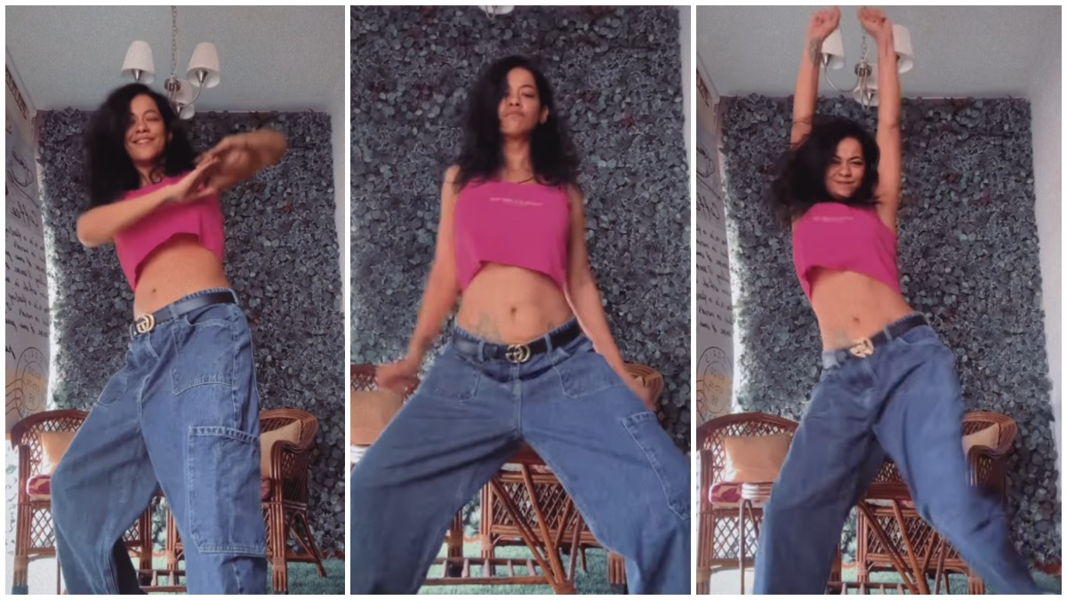 இடுப்பில் இருக்கும் பேண்ட் இறங்கும் அளவுக்கு ஆட்டம் போட்ட நடிகை.. ஹைலைட்டே டாட்டூ தான்!