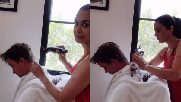 சக்ஸஸ்.. லாக்டவுனில் கணவருக்கு முடி வெட்டிவிட்ட பிரபல நடிகை.. பாராட்டி தள்ளிய பிரபல ஹீரோ!