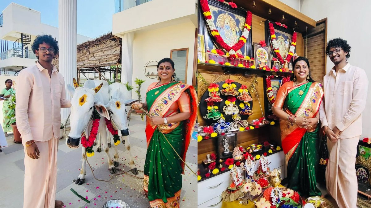 ரோஜா வீட்டில் விசேஷம்.. வேட்டி, சட்டையில் மாப்பிள்ளை போல இருக்காரே ரோஜா மகன்.. செம ஹேப்பி!