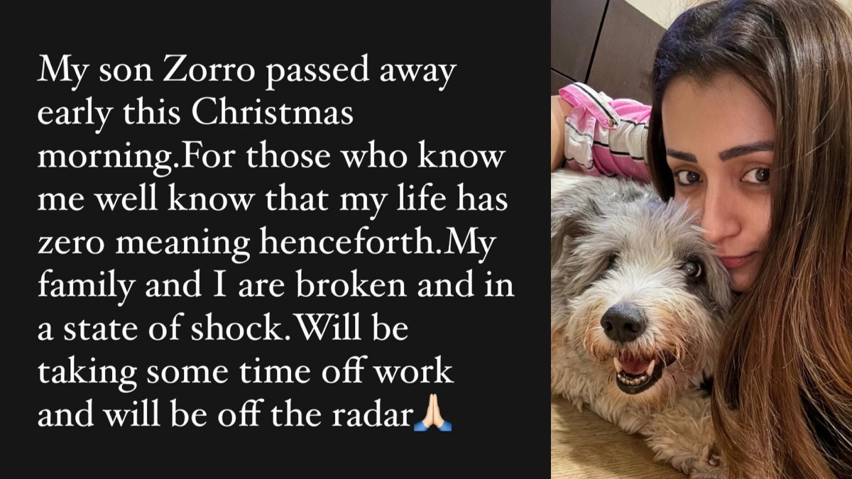 என்னோட மகன் செத்துட்டான்: நடிகை த்ரிஷாவுக்கு திருமணமே நடைபெறவில்லை என்பது அனைவரும் அறிந்த ஒன்று தான். ஆனால், அவர் தனது மகனாக செல்ல நாய்க்குட்டியான ஜோரோவை (Zorro) வளர்த்து வந்தார். கிறிஸ்துமஸ் தினமான இன்று அதிகாலையில் தனது மகன் ஜோரோ இறந்துவிட்டான். அதனால், இந்த கிறிஸ்துமஸ் பண்டிகையை நான் கொண்டாட முடியாமல் சோகத்தில் இருக்கிறேன். என்னை பற்றி நன்கு தெரிந்தவர்களுக்குத் தெரியும் ஜோரோ இல்லாமல் என் வாழ்க்கை பூஜ்ஜியமாக மாறிவிட்டது. இப்போதைக்கு என்னால் எந்த வேலையும் செய்ய முடியாது. சில நாட்கள் வேலைக்கு வரப்போவதில்லை. சோஷியல் மீடியா உள்ளிட்ட எதிலும் ஆர்வம் செலுத்த முடியாது என த்ரிஷா உருக்கமாக தனது செல்ல நாய்க்குட்டி உயிரிழந்த தகவலை அறிவித்துள்ளார்.