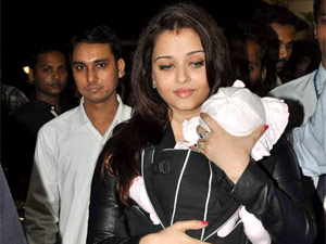 சிகாகோ மற்றும் நியூயார்க் விமான நிலையங்களில் ஐஸ்வர்யா ராயைப் பார்க்க ஏராளமானோர் கூடிவிட்டதால், பாதுகாவலர்கள் அவரையும் குழந்தையையும் பத்திரமாக அனுப்பி வைத்தனர்.