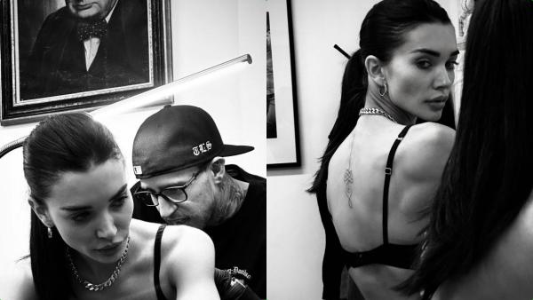 எமி ஜாக்சன் முதுகில் டாட்டூ