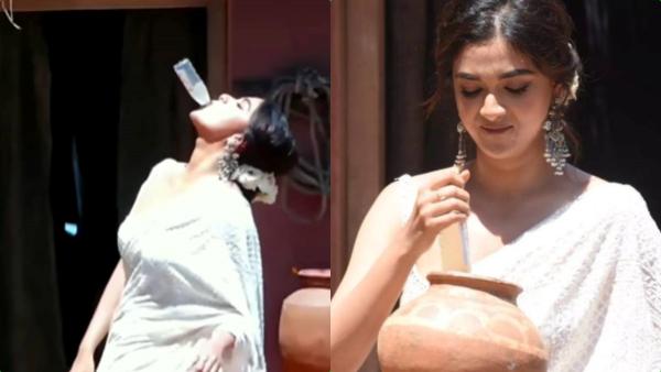 தசரா பட டிரைலரில் நானி சரக்கு பாட்டிலை மொத்தமாக குடிக்கும் காட்சி இருக்கும், அதைப்போலவே நானி, புரமோஷன் நிகழ்விலும் செய்து காட்டினார். அப்போது, அந்த பாட்டிலை வாங்கிய கீர்த்தி சுரேஷ், நானியைப் போல சரக்கை கல்பாக அடித்தார். அதைப்பார்த்து அங்கிருந்தவர்கள் அதிர்ச்சி அடைந்த நிலையில், அந்த பாட்டிலில் மது இல்லை வெறும் குளிர் பானம் தான் இருந்தது என தெரியவந்தது. இதையடுத்து அங்கு வந்திருந்தவர்களும் அந்த குளிர்பானத்தை வழங்கினார் கீர்த்தி சுரேஷ்.