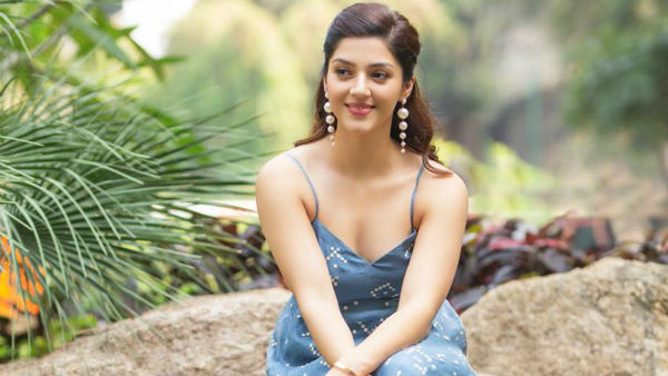 இதில் நீல நிற நீண்ட டீப் நெக் கவுனை அணிந்திருக்கிறார் மெஹ்ரீன். ஸ்லீவ்லெஸாக ஒரே ஒரு ஸ்ட்ராப்பை மட்டுமே கொண்டுள்ள அந்த கவுனில் பாறையின் மீது அமர்ந்து ஒய்யாரமாய் போஸ் கொடுத்திருக்கிறார் மெஹ்ரீன்.
