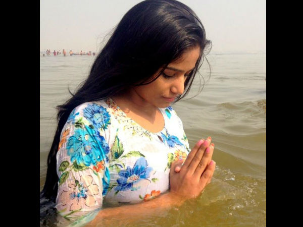புனித நீராடிய பூனம் கண்ணை மூடி கைகளை குவித்த வண்ணம் வைத்து தனது படம் ஹிட்டாக வேண்டும் என்று மனதிற்குள் பிரார்த்தனை செய்துள்ளார். இதை நாங்கள் சொல்லவில்லை அவர் தான் தெரிவித்துள்ளார்.