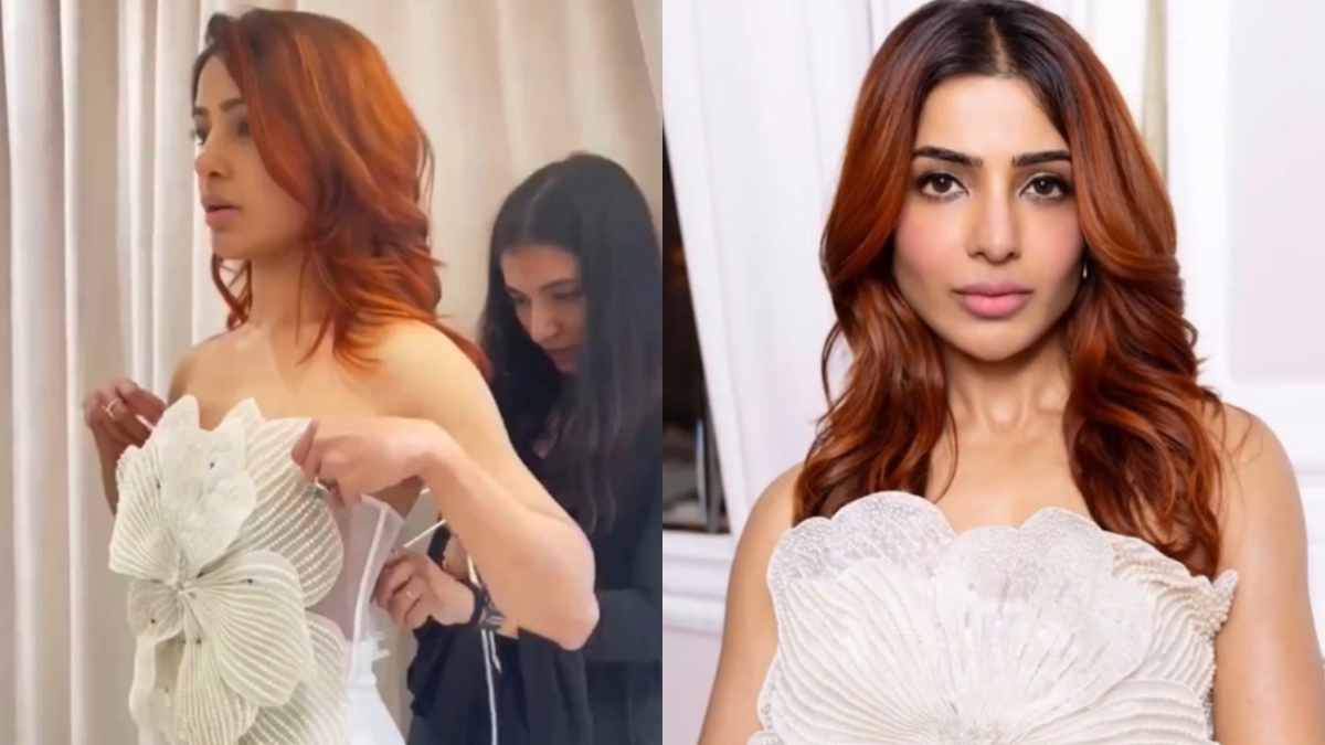 இந்நிலையில், நடிகை சமந்தாவுக்கு அந்த கவுனை ஆடை வடிவமைப்பாளர் ஒருவர் அணிவிக்கும் வீடியோ வெளியாகி ரசிகர்களுக்கு ட்ரீட்டாக அமைந்துள்ளது.