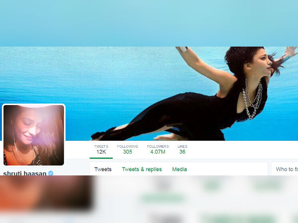 சென்னை: ஸ்ருதி ஹாஸன் தனது ட்விட்டர் பக்கத்தில் வைத்துள்ள ஃப்ரொபைல் மற்றும் கவர் புகைப்படங்கள் ரசிகர்களை கவர்ந்துள்ளன.