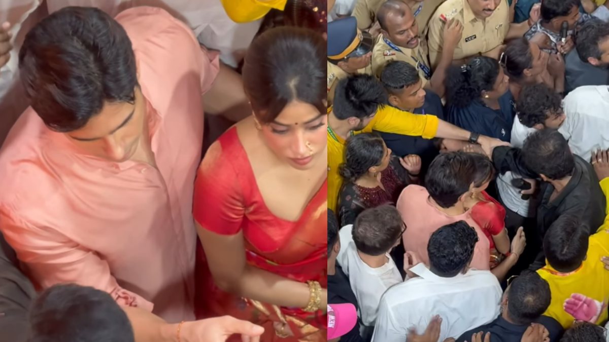 விநாயகர் சதுர்த்தி கூட்ட நெரிசலில் சிக்கிய ஜான்வி கபூர்.. ஹீரோ என்ன வேலை பார்த்து இருக்காரு பாருங்க!