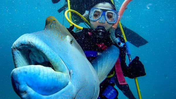 ஆண்ட்ரியாவின் ஸ்கூபா டைவிங் புகைப்படத்தில் அவருக்கு முன்பாக ராட்சத மீன் ஒன்று காணப்படுகிறது. ஆனால், உலகிலேயே இதுதான் ரொம்ப ஃப்ரெண்ட்லி ஃபிஷ் என்றும், இது ஒன்றும் செய்யாது என்றும் நடிகை ஆண்ட்ரியா பதிவிட்டுள்ளார்.