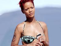தொடையில் 'துப்பாக்கி பச்சை' குத்திய ரிஹானா!