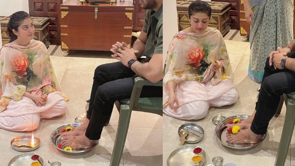 இந்த நிலையில் நேற்று, தனது இன்ஸ்டாகிராம் பக்கத்தில், தனது கணவனுக்கு பாத பூஜை செய்யும் புகைப்படத்தை பகிர்ந்து இருந்தார். நேற்று தென்னிந்தியா முழுவதும் பீமா அமாவாசை தினம் கொண்டாடப்பட்டது. அதாவது, பார்வதி தேவிக்கு சிவபெருமான் அவருடைய பக்தியை புரிந்துகொண்டு ஆசீர்வதித்த நாள் தான் பீமா அமாவாசை தினம். இந்த தினத்தில் கணவருக்கு பாத பூஜை செய்யும் மனைவி நீண்ட ஆயுள் கூடி எல்லா வளமும் பெற்று வாழ்வார்கள் என்றும் நம்பிக்கை உள்ளது.