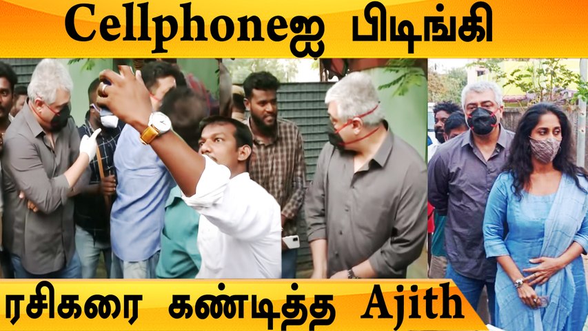 அப்போது, ரசிகர் ஒருவர் அஜித்தின் அருகில் நின்று அவருடைய அனுமதியில்லாமல் செல்பி எடுக்க முயன்றார். இதனால் கடுப்பான அஜித் ரசிகரின் செல்போனை பிடுங்கினார். இதனை சற்றும் எதிர்பாராத அந்த ரசிகர் அதிர்ச்சி அடைந்தார்.
