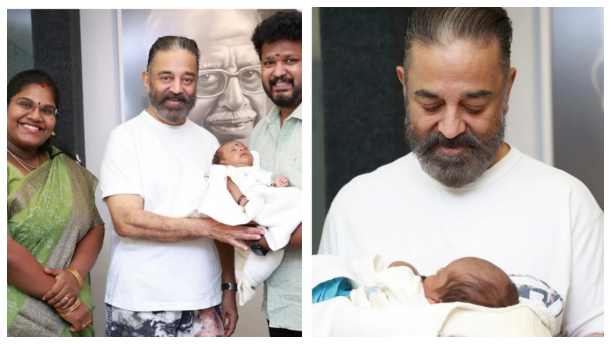 குழந்தையின் பெயர் என்ன தெரியுமா: இதையடுத்து, ஜனவரி மாதம் இந்திரஜாவிற்கு அழகான ஆண் குழந்தை பிறந்தது. இந்த மகிழ்ச்சியான செய்தியை இன்ஸ்டாகிராமில் பகிர்ந்த கார்த்திக், தாய் - சேய் இருவரும் நலமுடன் இருப்பதாகவும் பேரன் பிறந்த சந்தோஷத்தில், ரோபோ ஷங்கரின் குடும்பம் துள்ளி குதித்த வீடியோவை வெளியிட்டு அறிவித்து இருந்தார். இந்நிலையில், இந்திரஜா மற்றும் கார்த்திக் தம்பதியினர், நடிகர் கமல்ஹாசனை சந்தித்து வாழ்த்து பெற்றனர். அப்போது கமல் குழந்தைக்கு "நட்சத்திரன்" என பெயர் வைத்துள்ளார். இதன் போட்டோக்களை கார்த்திக் தனது இன்ஸ்டாகிராமில் வெளியிட்டுள்ளார்.