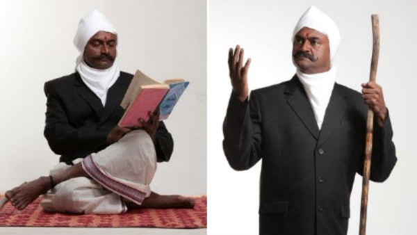 தலையில் முண்டாசு, கறுப்புக்கோட் கையில் தடி, நெற்றியில் குங்குமம் என அப்படியே அச்சு அசலாக உள்ளார் எம்எஸ் பாஸ்கர். மற்றொரு போட்டோவில் அதே கெட்டப்பில் பாரதியார் படம் பதியப்பட்ட புத்தகத்தை படிப்பது போல் போஸ் கொடுத்துள்ளார்.