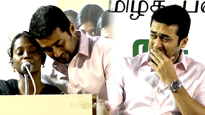 சென்னை: மாணவி ஒருவரின் உருக்கமான பேச்சைக் கேட்டு நடிகர் சூர்யா மேடையிலேயே உடைந்து அழுத சம்பவம் நெகிழ்ச்சியை ஏற்படுத்தியுள்ளது.