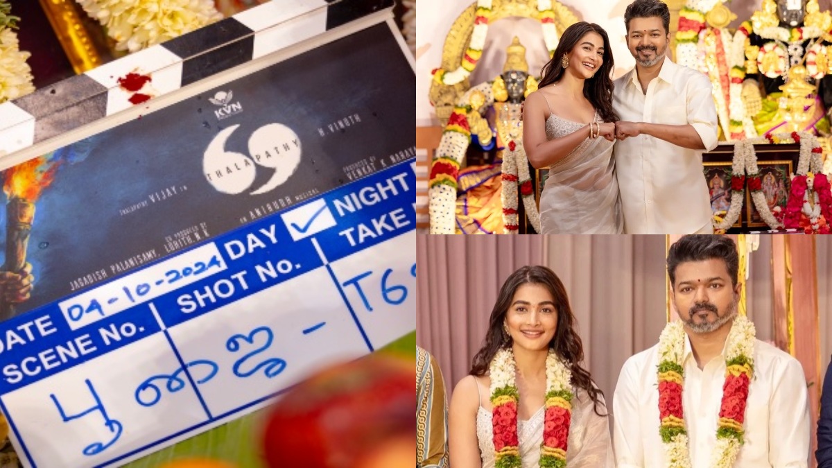 தளபதி 69 பட பூஜை புகைப்படங்கள்: இந்தப் பூஜையில் நடிகர் விஜய், பூஜா ஹெக்டே, மமிதா பைஜு, இயக்குநர் ஹெச் வினோத் மற்றும் தயாரிப்பாளர்கள் கலந்துக் கொண்டுள்ளனர். இதன் கலர்புல் புகைப்படங்கள் தற்போது வெளியிடப்பட்டுள்ளன. இதன் கேப்ஷனில் புகைப்படங்களிலும் சரி, அதை பார்த்துக் கொண்டிருக்கும் உங்க முகத்திலும் சரி மகிழ்ச்சி புன்னகை இருக்கு என்பது எங்களுக்கு தெரியும் என்று கேவிஎன் நிறுவனம் தெரிவித்துள்ளது. இந்தப் புகைப்படங்களை பார்த்த ரசிகர்கள் தற்போது உற்சாக கொண்டாட்டத்தில் உள்ளனர். இந்த பூஜையில் இசையமைப்பாளர் அனிருத் பங்கேற்கவில்லை. ஆனால் விஜய் பட்டு வேட்டி வெள்ளை சட்டையில் பிரகாசமாக காணப்படுகிறார்.