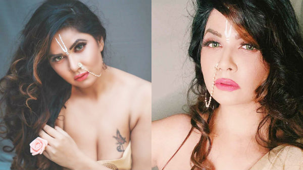 இந்நிலையில், ஆபா பால் தற்போது ஷேர் செய்துள்ள போட்டோ அதிர்ச்சியை ஏற்படுத்தியுள்ளது. உடம்பில் அரைகுறையாக ஒரு துணியை சுற்றியுள்ளார் ஆபால் பால். அதில் அவரது முன்னழகு அப்படியே அப்பட்டமாக தெரிகிறது. அதோடு, முக்கில் பெரிய மூக்குத்தியுடன் நெற்றியில் வெள்ளை நிறத்தில் நாமம் போட்டுள்ளார்.