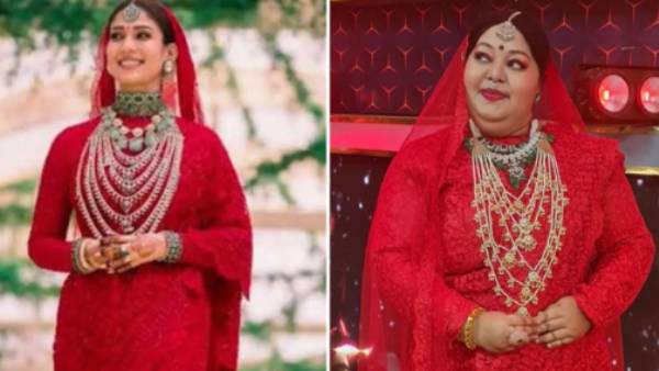 நயன்தாரா திருமணத்தை அடுத்து பல ஜவுளிக்கடைகளில், நயன்தாரா புடவை என்ற பெயரில் வியாபாரம் படு ஜோராக நடந்தது.இந்நிலையில், நகைச்சுவை நடிகையான ஆர்த்தி கணேஷ், நயன்தாராவின் திருமண கோலத்தை இமிட்டேட் செய்து, சிவப்பு நிற எம்பிராய்டரி சேலை, ஜாக்கெட், நகைகள் என அச்சு அசலாக நயன்தாரா போல மாறியிருந்தார். இந்த போட்டோவை பார்த்த நெட்டிசன்கள் நடிகை ஆர்த்தியைஇதெல்லாம் தேவையா என கேட்டு கிண்டலடித்து வருகின்றனர்.