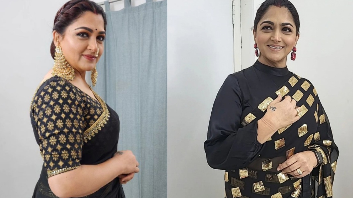 கருப்புநிற புடவையில் ஜொலிக்கும் குஷ்பூ: நடிகை குஷ்பூ 90களின் காலகட்டங்களில் மிகவும் பிசியான நடிகையாக இருந்தவர். தொடர்ந்து கமல், ரஜினி சரத்குமார் என முன்னணி நடிகர்களுடன் இணைந்து இவர் பல ஹிட் படங்களை கொடுத்துள்ளார். ஒருகட்டத்தில் தன்னுடைய படத்தை இயக்கிய இயக்குநர் சுந்தர் சியை காதலித்து திருமணமும் செய்துக் கொண்டார். இவர்கள் இருவருக்கும் இரண்டு பெண் குழந்தைகள் உள்ளனர். இவர்களில் ஒருவர் நடிகையாகவும் மற்றவர் தயாரிப்பாளராகவும் ஆக விருப்பம் தெரிவித்துள்ளனர்.