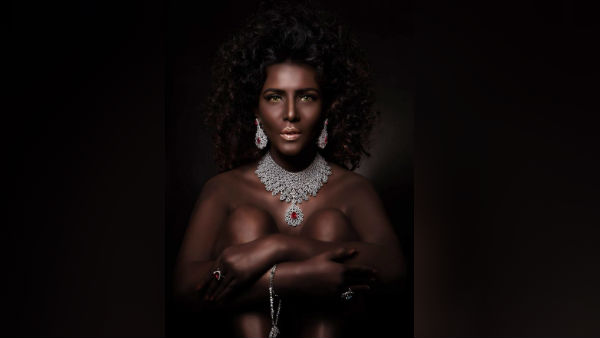 நகைக்கடை விளம்பரத்துக்காக உடம்பில் பிட்டுத் துணியில்லாமல் கறுப்பு நிற மையை பூசி மேக்கப் போட்டிருக்கிறார் மீரா மிதுன். ஆனாலும் எதுவும் வெளியில் தெரியாதப்படி கால்களையும் கைகளையும் மடித்து வைத்து மறைத்துள்ளார். இந்த போட்டோவை தனது டிவிட்டர் பக்கத்தில் வெளியிட்டுள்ளார்.
