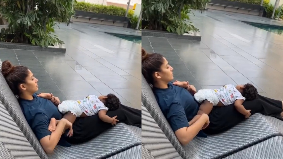 இந்நிலையில் தன்னுடைய மகன் உயிரை, அவரது மடியில் நயன்தாரா போட்டு தாலாட்டி தூங்க வைக்கும் வீடியோ சமூக வலைதளங்களில் வெளியாகி ரசிகர்களை வெகுவாக கவர்ந்துள்ளது. நீச்சல் குளத்தின் அருகில் அமர்ந்தபடி தன்னுடைய குழந்தையை நயன்தாரா இந்த வீடியோவில் தாலாட்டி தூங்க வைக்கிறார். இந்த க்யூட் வீடியோவை அதிகமான அளவில் ரசிகர்கள் ஷேர் செய்து வருகின்றனர்.