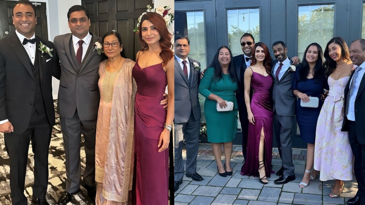 தமிழ் சினிமாவின் முன்னணி நடிகையாக சமந்தா திகழ்ந்து வருகிறார். கோலிவுட், பாலிவுட், ஹாலிவுட் என ரவுண்டு கட்டி நடித்து வரும் சமந்தா, அரியவகை நோயால் பாதிக்கப்பட்டதை அடுத்து தற்போது ஓய்வில் இருந்து வருகிறார். இந்நிலையில், சமந்தாவின் மூத்த சகோதரனின் திருமணம் விஸ்கான்சின் ஜெனீவா ஏரியில் நடைபெற்றது. இதில் சமந்தா தனது தாயார் நினெட் பிரபு மற்றும் அப்பா,அண்ணனுடன் ஊதா நிற ஸ்லீவ்லெஸ் கவுன் அணிந்து கொண்டு போஸ் கொடுத்துள்ளார்.