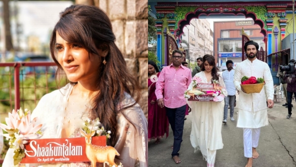 இந்நிலையில், நடிகை சமந்தா, ஹைதராபாத்தில் உள்ள பெத்தம்மா கோவிலில் சாமி தரிசனம் செய்து சாகுந்தலம் திரைப்படத்தின் பிரமோஷன் நிகழ்ச்சியை தொடங்கினார். வெள்ளை உடையில் அழகாக இருந்த சமந்தா, கையில் சாகுந்தலம் என எழுதப்பட்டிருந்த தட்டில், பூ, புடவை, வளையளுடன் கோவிலுக்கு வந்திருந்தார். அவருடன் படத்தின் நாயகன் தேவ் மோகனும், படக்குழுவினரும் உடன் இருந்தனர்.