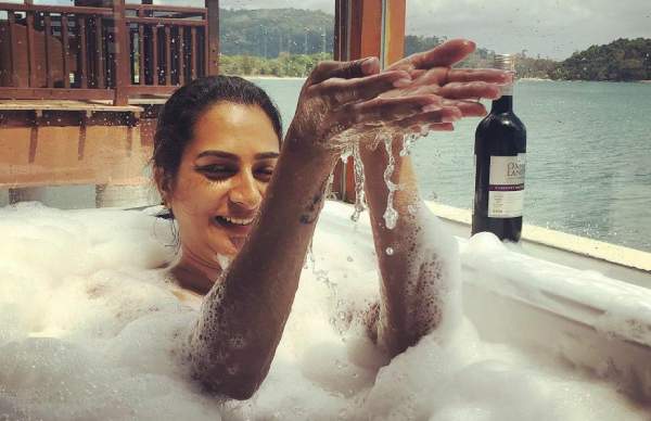 சமீபத்தில் நீச்சல் குள புகைப்படங்களை வெளியிட்டு வைரலாக்கிய அவர், தற்போது பாத் டப்பில் குளிக்கும் போட்டோக்களை வெளியிட்டுள்ளார்.