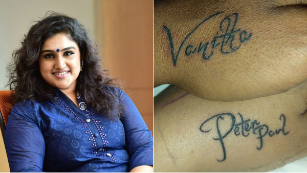 சென்னை: தனது காதலரான பீட்டர் பாலின் பெயரை நடிகை வனிதா விஜயக்குமார் டாட்டூ வரைந்திருக்கும் போட்டோ வைரலாகி வருகிறது.