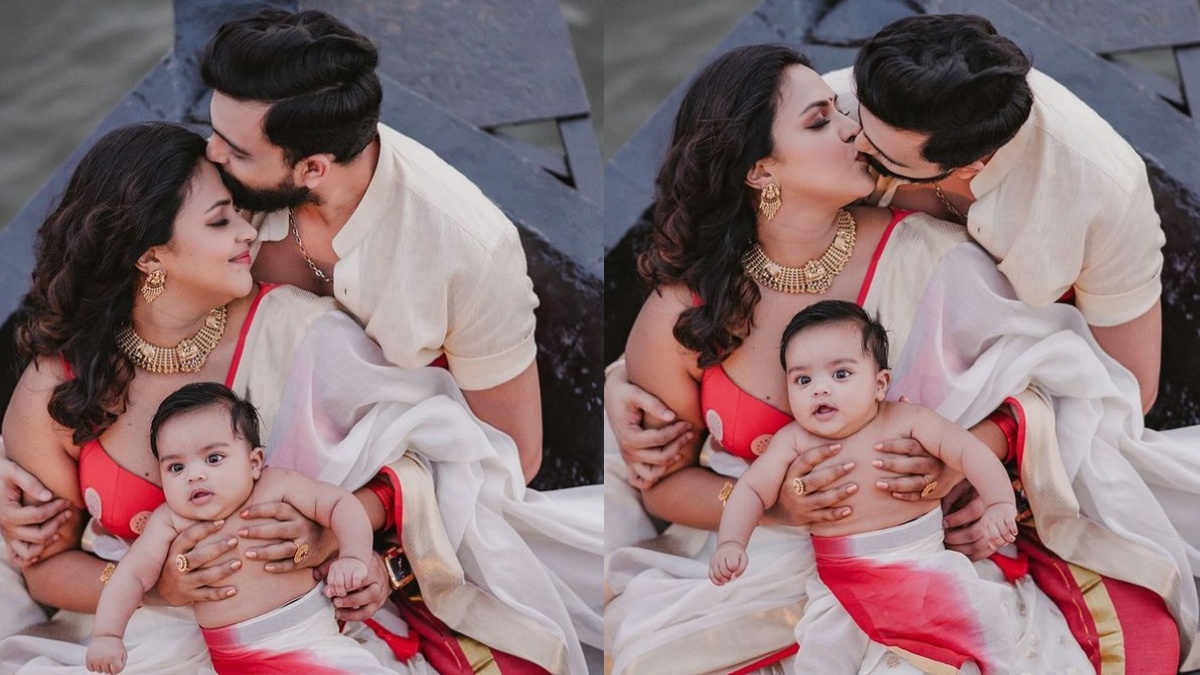 க்யூட் செல்லம்: இதைத்தொடர்ந்து, நடிகை அமலா பாலுக்கு ஜூன் 11ஆம் தேதி ஆண் குழந்தை பிறந்தது. இந்த போட்டோவை அமலா பால் இணையத்தில் வெளியிட்டு குழந்தைக்கு இலை (ILAI) என பெயர் வைத்து உள்ளதாக அறிவித்தார். குழந்தை பிறப்பிற்கு பிறகு கணவருடன் விதவிதமான போட்டோக்களை வெளியிட்டு வந்த அமலா பால், முதன் முறையாக தனது குழந்தையின் போட்டோவை வெளியிட்டு ஓணம் வாழ்த்து தெரிவித்துள்ளார். கேரள பாரம்பரிய உடையில் கையில் குழந்தையை வைத்துக்கொண்டு, கணவருக்கு முத்தம் கொடுத்துள்ளார். இந்த போட்டோவைப் பார்த்த ஃபேன்ஸ், வாவ், செம க்யூட் புள்ள லட்டு மாதிரி இருக்கு கருத்துக்களை பகிர்ந்து வருகின்றனர். இணையத்தில் இந்த போட்டோ டிரெண்டாகி வருகிறது.