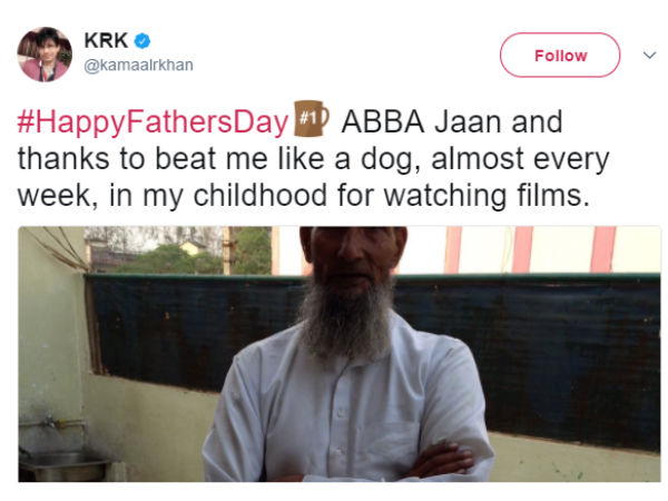 சென்னை: தந்தையர் தினத்தில் பாலிவுட் விமர்சகர் கேஆர்கே ட்வீட்டியது பலரின் கவனத்தையும் ஈர்த்துள்ளது.