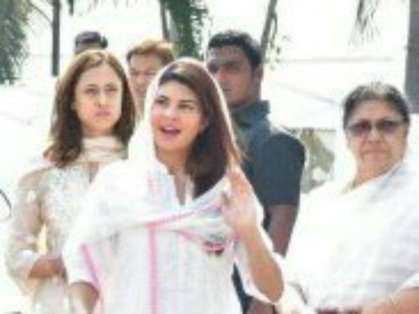 போனி கபூரின் தம்பி அனில் கபூர் குடும்பத்திற்கு நெருக்கமானவரான நடிகை ஜாக்குலின் பெர்ணான்டஸ் அஞ்சலி செலுத்த வந்த இடத்தில் பிரபலங்களை பார்த்து சிரித்து பேசியுள்ளார்.