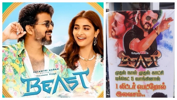 இந்நிலையில் விருதுநகரில் கேகேஎஸ்ஆருக்கு சொந்தமான ராஜலட்சுமி மற்றும் அமிர்தராஜ் திரையரங்குகளில் பீஸ்ட் படத்தின் பர்ஸ்ட் டே பர்ஸ்ட் ஷோவிற்கான டிக்கெட்டுகள் 5 வாங்கினால் ஒரு லிட்டர் பெட்ரோல் இலவசம் என்று அறிவிக்கப்பட்டுள்ளது. படத்தின் முதல் காட்சி காலை 7 மணிக்கே துவங்கவுள்ளது.