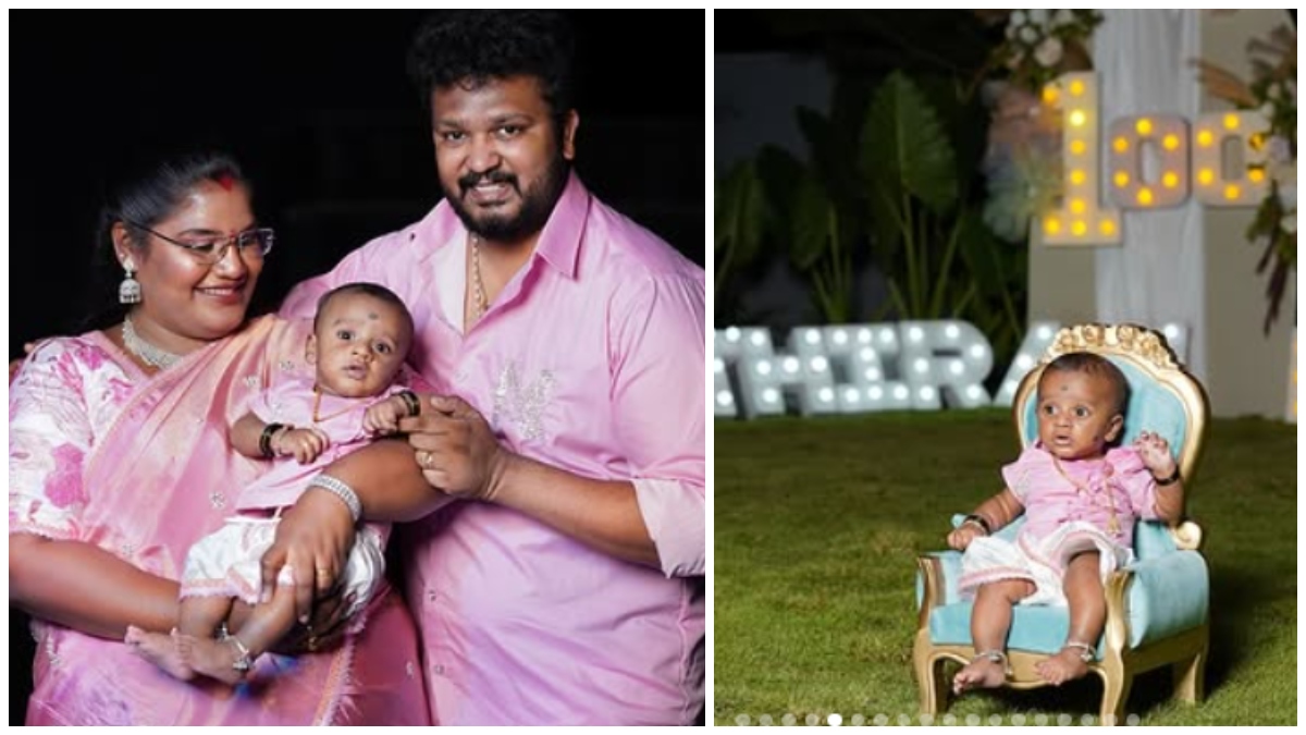 முருகன்: அதுவரை குழந்தையின் முகத்தை யாருக்கும் காட்டாமல் இருந்த இந்திரஜா, குழந்தைக்கு முருகன் வேடமிட்டு, எங்கள் வீட்டு சின்ன முருகன் நட்சத்திரன் என, குழந்தை விதவிதமான கெட்டப்பில் இருக்கும் போட்டோவை ஷேர் செய்து இருந்தார். இந்த போட்டோவை பார்த்த பலரும் வாழ்த்துக்களை தெரிவித்து, குழந்தை அப்படியே தாத்தாவை போல இருக்கிறது என கருத்துக்களை பகிர்ந்து வந்தனர். இதையடுத்து தற்போது, இந்திரஜா, குழந்தை பிறந்து 100 நாட்கள் ஆனதை விமர்சையாக கொண்டாடி உள்ளார். ஒட்டுமொத்த குடும்பமும் பிங்க் நிறத்தில் உடை அடைந்து கொண்டு, கேட் வெட்டி 100வது நாளை கொண்டாடி உள்ளனர். அந்த போட்டோவை இந்திரஜா சங்கர் தனது இன்ஸ்டாகிராம் பக்கத்தில் பகிர்ந்து உள்ளார். அந்த போட்டோவை பார்த்த ரசிகர்கள் குட்டி நட்சத்திரனுக்கு வாழ்த்துக்களை தெரிவித்து வருகின்றனர். நட்சத்திர ஓட்டலில் நடந்த இந்த 100வது நாள் கொண்டாட்டத்தில் ரோபா சங்கரின் நெருங்கி உறவினர்கள் மட்டுமே கலந்து கொண்டுள்ளனர். இந்த போட்டோ தற்போது இணையத்தில் டிரெண்டாகி வருகிறது.