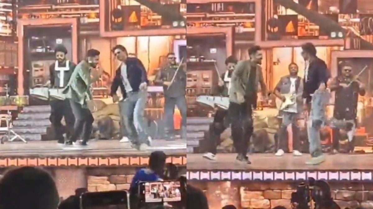 ஜவான் ஃபர்ஸ்ட் சிங்கிளாக வெளியான 'வந்த இடம்' பாடலை அனிருத் பாடிக் கொண்டிருக்க, கீழே இருந்த ஷாருக்கான் மேடையில் ஏறி குத்தாட்டம் போட்டார். அனிருத்தும் ஷாருக்கானும் ஆடியது ரசிகர்களுக்கு செம்ம ட்ரீட்டாக இருந்தாலும், அவர்கள் போட்ட ஸ்டெப் என்னவோ கவுண்டமணியின் ஸ்டைலில் இருந்தது. கோலிவுட் ஹீரோக்களை போல ஈகோ பார்க்காமல், ரசிகர்களுக்காக ஜாலியாக ஆட்டம் போட்டு அசரடித்தார் ஷாருக்கான். தற்போது இந்த வீடியோ டிவிட்டரில் ட்ரெண்டிங்கில் உள்ளது.