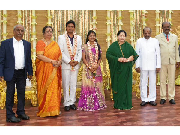 சென்னை: இந்தியப் பசுமைத் தீர்பாய்யத்தின் தென்மண்டல நீதிபதி சொக்கலிங்கம் சகோதரரும் படத் தயாரிப்பாளருமான ஏ.எல்.எஸ்.நாச்சியப்பன் மகன் முத்து கணேஷ் - லலித் கலா அகாடமியின் தென்மண்டல இயக்குனர் பழனியப்பன் மகள் நித்தியா திருமண வரவேற்பில் நேரில் வந்து வாழ்த்தினார் முதல்வர் ஜெயலலிதா.