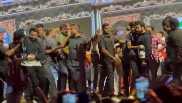 இந்நிலையில், ஆஸ்கர் விருது விழாவிற்குப் பின்னர் இந்தியா திரும்பிய ஜூனியர் NTR, ஹைதராபாத்தில் நடைபெற்ற ஒரு நிகழ்ச்சியில் கலந்துகொண்டார். இதனையடுத்து அவரை காண ஆயிரக்கணக்கான ரசிகர்கள் அங்கு திரண்டிருந்தனர். ரசிகர்களின் உற்சாக குரலின் நடுவே பேசி முடித்த ஜூனியர் NTR, அதன்பிறகு அங்கிருந்து கிளம்பினார். அப்போது மேடையேறிய ரசிகர் ஒருவர் பவுன்சர்களுக்கு டிமிக்கி கொடுத்து ஜூனியர் NTR அருகே நெருங்க முயன்றார்.