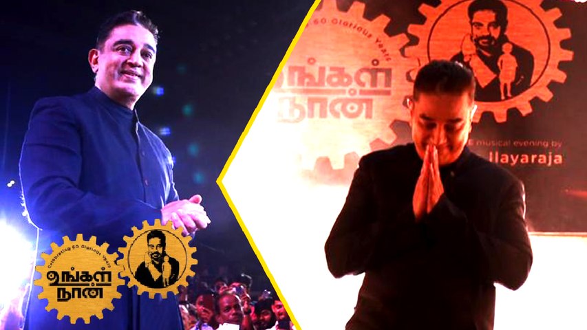 கருப்பு நிற உடையில் விழா மேடைக்கு கம்பீரமாக வந்த கமல்ஹாசன், ரசிகர்களுக்கு தனது நன்றியை தெரிவித்தார். மேலும், தன்னை செதுக்கிய 60 ஆளுமைகள் குறித்த நீண்ட தொரு பட்டியலை வாசித்தார்.