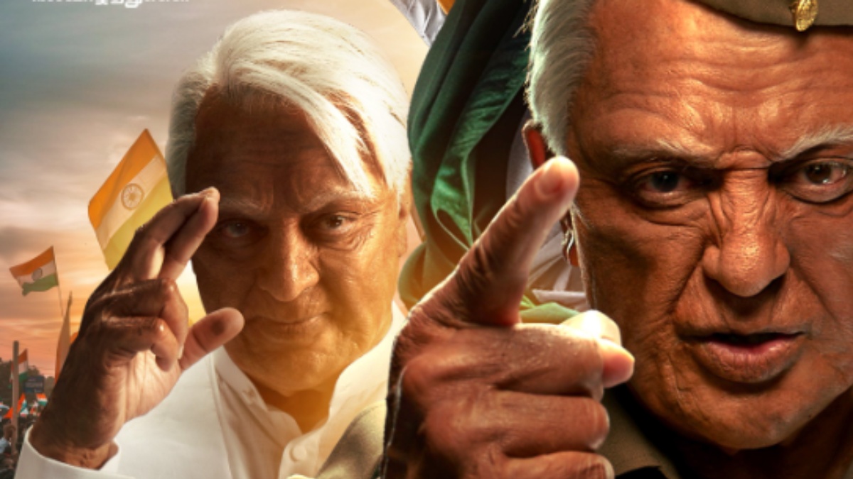 இந்தியன் 2 லுக்: 90 வயது இந்தியன் தாத்தாவாக கமல்ஹாசன் இந்தியன் 2 படத்தில் நடித்து வருகிறார். இந்தியன் படத்தின் கிளைமேக்ஸில் சேனாபதி சாகாமல் சிங்கப்பூருக்கு தப்பிச் சென்றிருப்பது போல காட்சிகள் காட்டப்பட்டிருக்கும். அதிலிருந்து இந்த படம் தொடங்கும் என எதிர்பார்க்கப்படுகிறது. சந்துரு கமல்ஹாசனின் மகனாக சித்தார்த் நடித்திருப்பார் என தெரிகிறது. இதற்கு முன் வெளியானதை விட சேனாபதியின் செம டெரர் க்ளோஸ் அப் லுக் தற்போது வெளியாகி தமிழ் புத்தாண்டு வாழ்த்துகளை இந்தியன் 2 படக்குழுவும் வெளியிட்டுள்ளது.