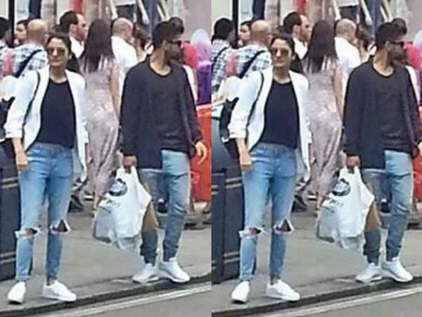 லண்டனில் கோஹ்லியும், அனுஷ்காவும் ஒரே நிறத்திலான உடை அணிந்து கடை, கடையாக ஏறி இறங்கி ஷாப்பிங் செய்துள்ளனர். அவர்கள் ஷாப்பிங் செய்தபோது எடுக்கப்பட்ட புகைப்படம் சமூக வலைதளங்களில் வெளியாகியுள்ளது.