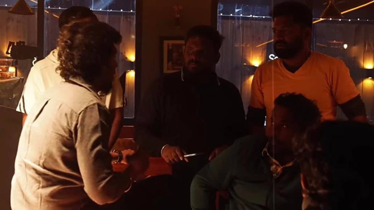 சென்னையில் நடைபெற்று வரும் படப்பிடிப்பு முழுவதும் செட் போட்டு தான் படமாக்கப்படுகிறது. இதில், பேக்கரி செட் போட்டு அதில் விஜய் நடிக்கும் காட்சிகளை எடுத்து வருகிறார் லோகேஷ். அப்போது டைரக்ஷன் டீமும் விஜய் சீரியஸ்ஸாக டிஸ்கஸ் செய்துவரும் போட்டோ ஒன்று தற்போது வெளியாகியுள்ளது. மாஸ்டர் வாத்தி மாதிரி சின்ன மேஜையில் அமர்ந்திருக்கும் விஜய், தன்னை சுற்றி நிற்கும் படக்குழுவினருடன் பேசிக் கொண்டிருக்கிறார்.