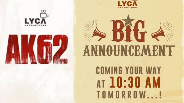 முக்கியமாக அஜித்தின் ஏகே 62 படத்தையும் லைகா நிறுவனம் தான் தயாரிக்கவுள்ளது. இந்தப் படத்தில் இருந்து விக்னேஷ் சிவன் விலகியதால், மகிழ் திருமேனி இயக்கவுள்ளதாக சொல்லப்படுகிறது. கடந்த சில தினங்களாகவே ஏகே 62 அப்டேட் விரைவில் வெளியாகும் என ரசிகர்கள் எதிர்பார்த்திருந்தனர். மார்ச் முதல் வாரத்தில் வெளியாகும் என்றும் சொல்லப்பட்டது. அதன்படி தற்போது ஏகே 62 அப்டேட் நாளை காலை 10.30 மணிக்கு அறிவிக்கப்படும் என ரசிகர்கள் எதிர்பார்த்துள்ளனர். இதனால் ஏகே 62 என்ற ஹேஷ்டேக் ட்விட்டரில் ட்ரெண்டாகி வருகிறது.