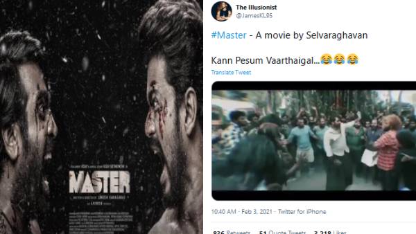 இந்நிலையில், மாஸ்டர் படத்தை செல்வராகவன் படம் என ஒரு வீடியோ எடிட்டுடன் சில நெட்டிசன்கள் டிரெண்ட் செய்து வருகின்றனர். ஒவ்வொரு நாளும் மாஸ்டர் படம் குறித்த ஆராய்ச்சி மற்றும் ட்ரோல்கள் என சமூக வலைதளம் நகைச்சுவைக்கு பஞ்சமே இல்லாமல் நகர்ந்து கொண்டே போகிறது.